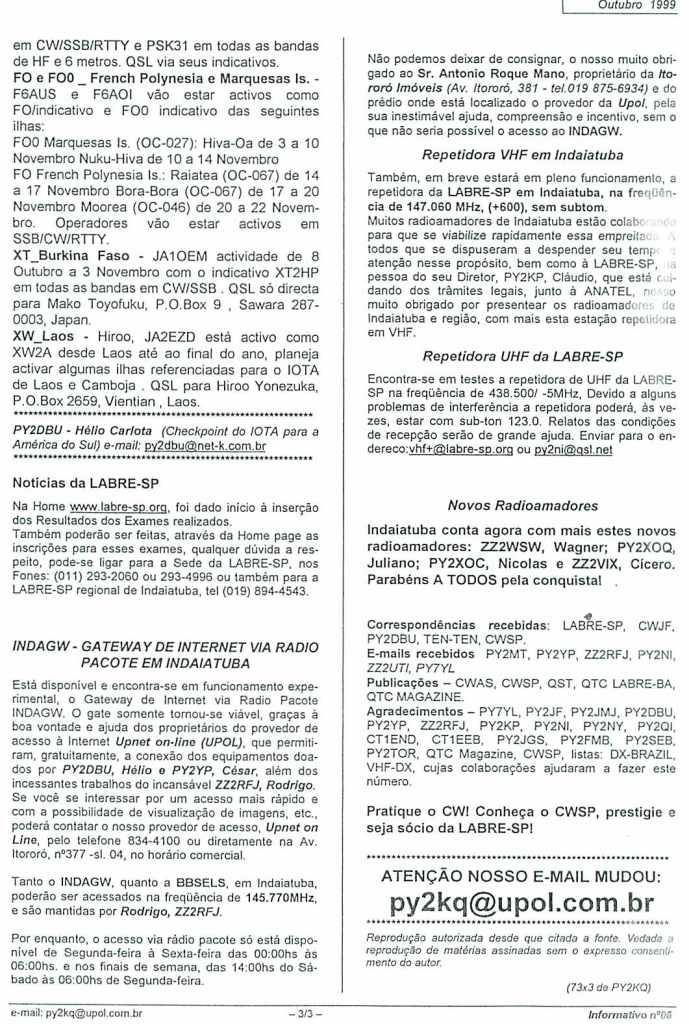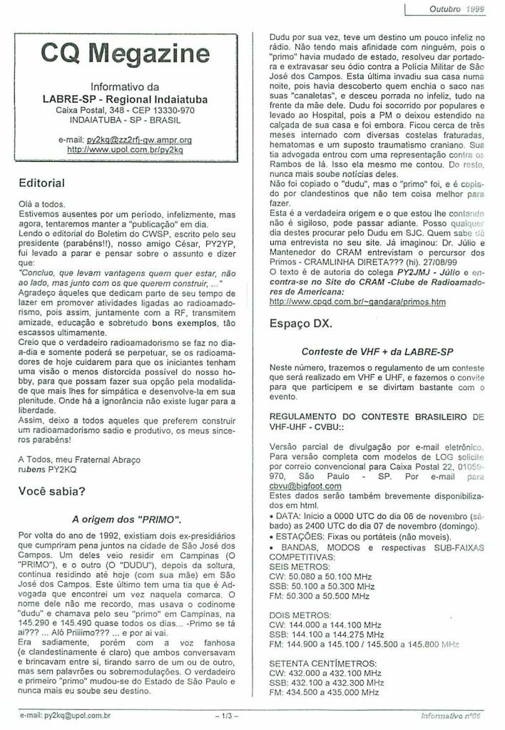O boletim era publicado pela Regional Indaiatuba/SP..
