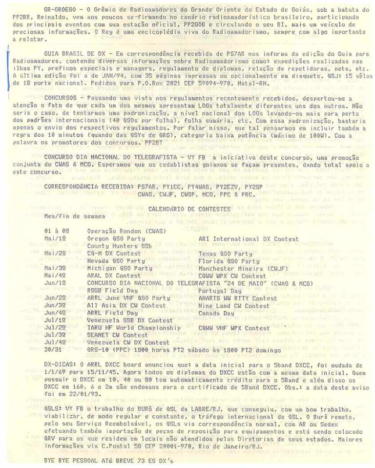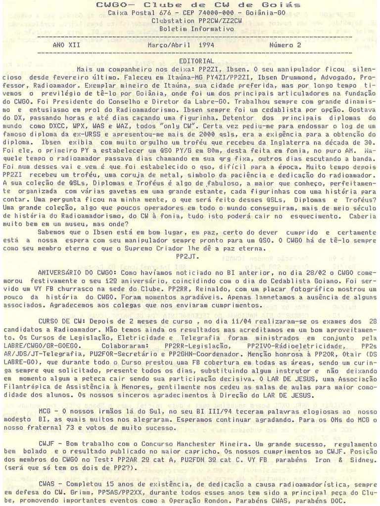 O boletim era publicado pelo Clube de CW de Goiás.