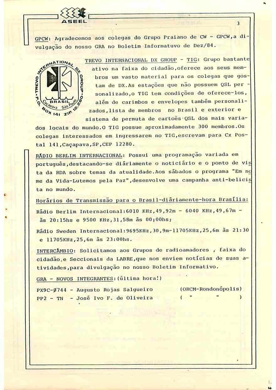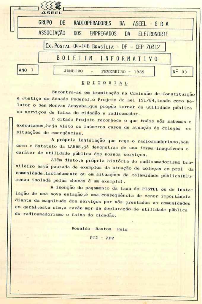 O boletim era publicado pelo Grupo de Radioamadores da Associação do Empregados da ELETRONORTE.