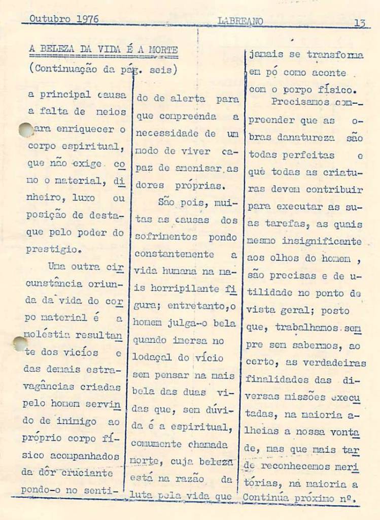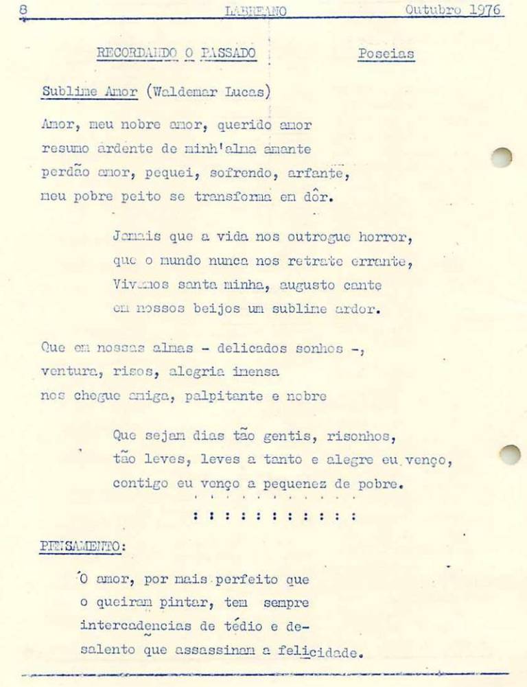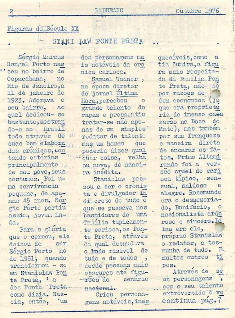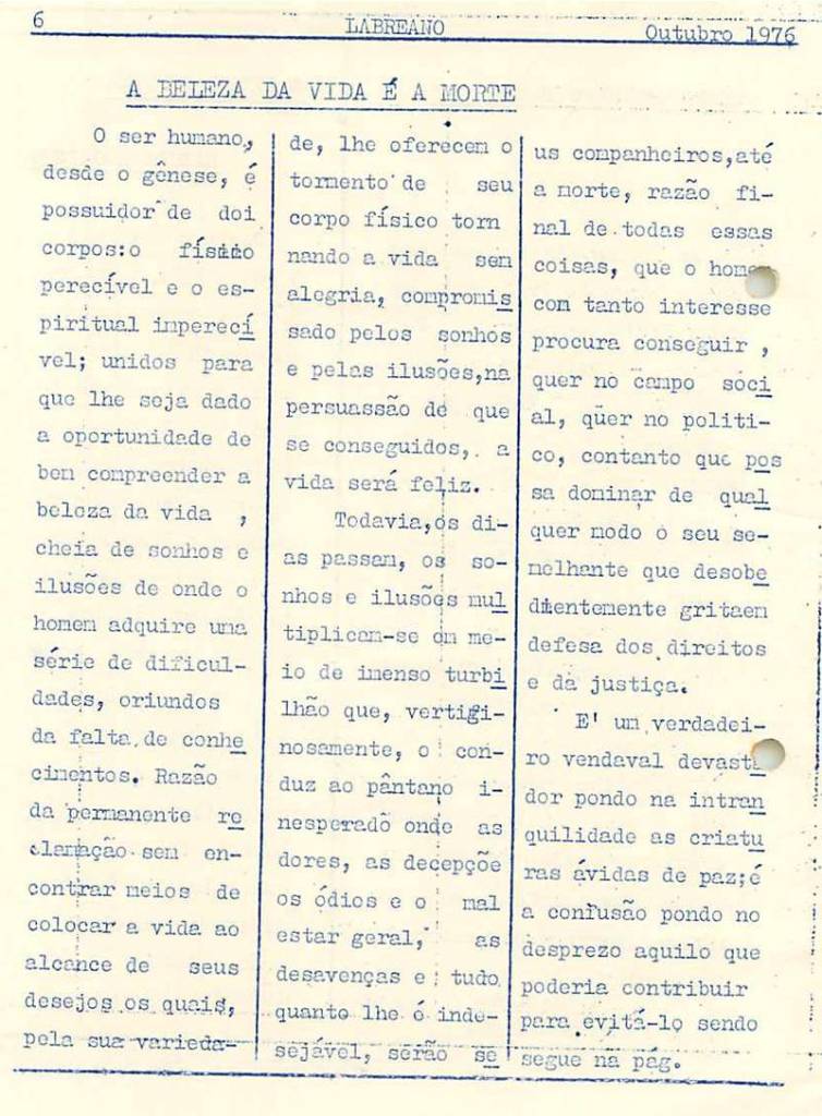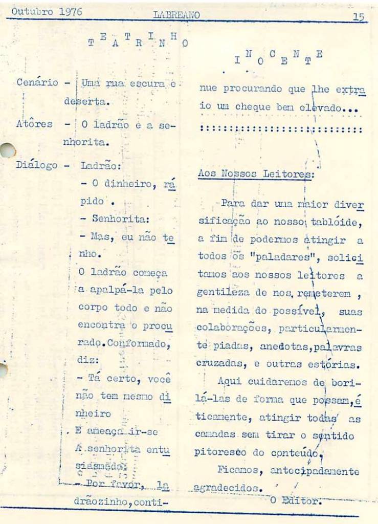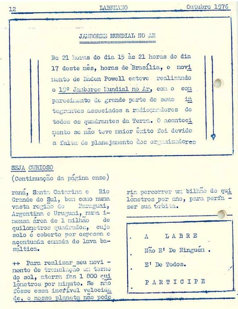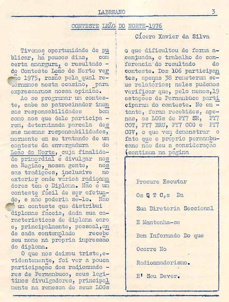 O boletim era publicado pela LABRE/PE. Ano I, nº 1, outubro/1976 .
