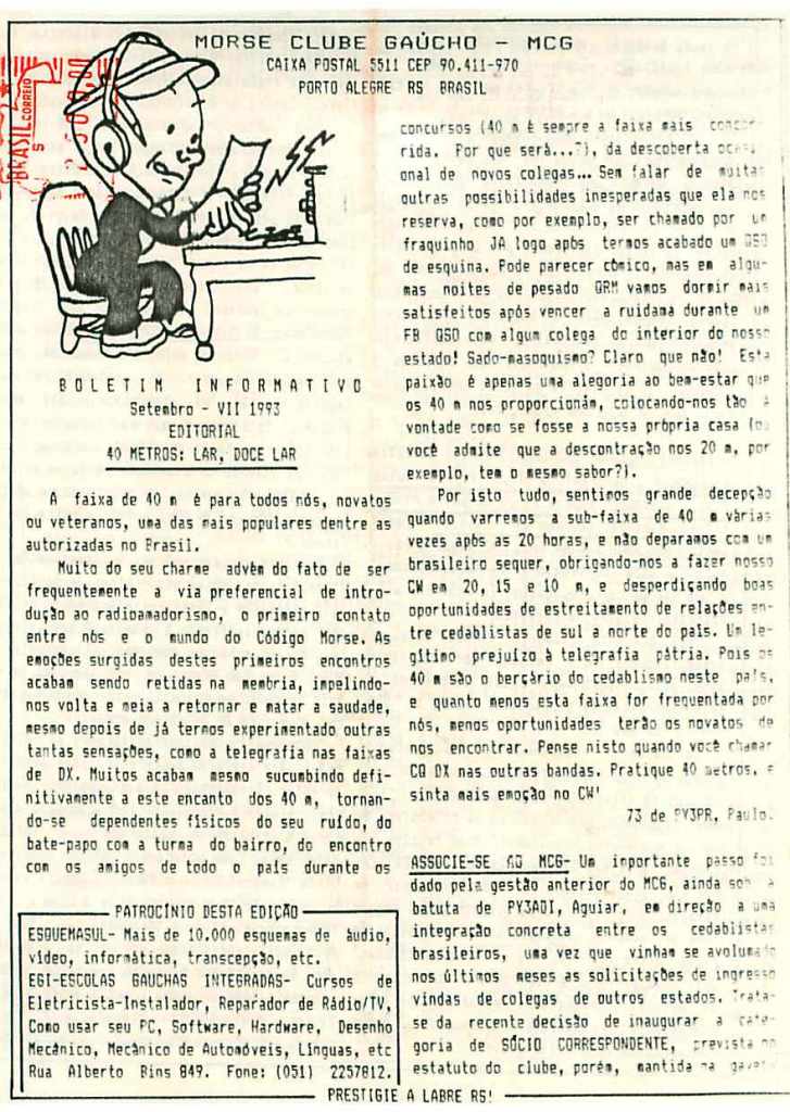 O boletim era publicado mensalmente pelo Morse Clube Gaścho.
