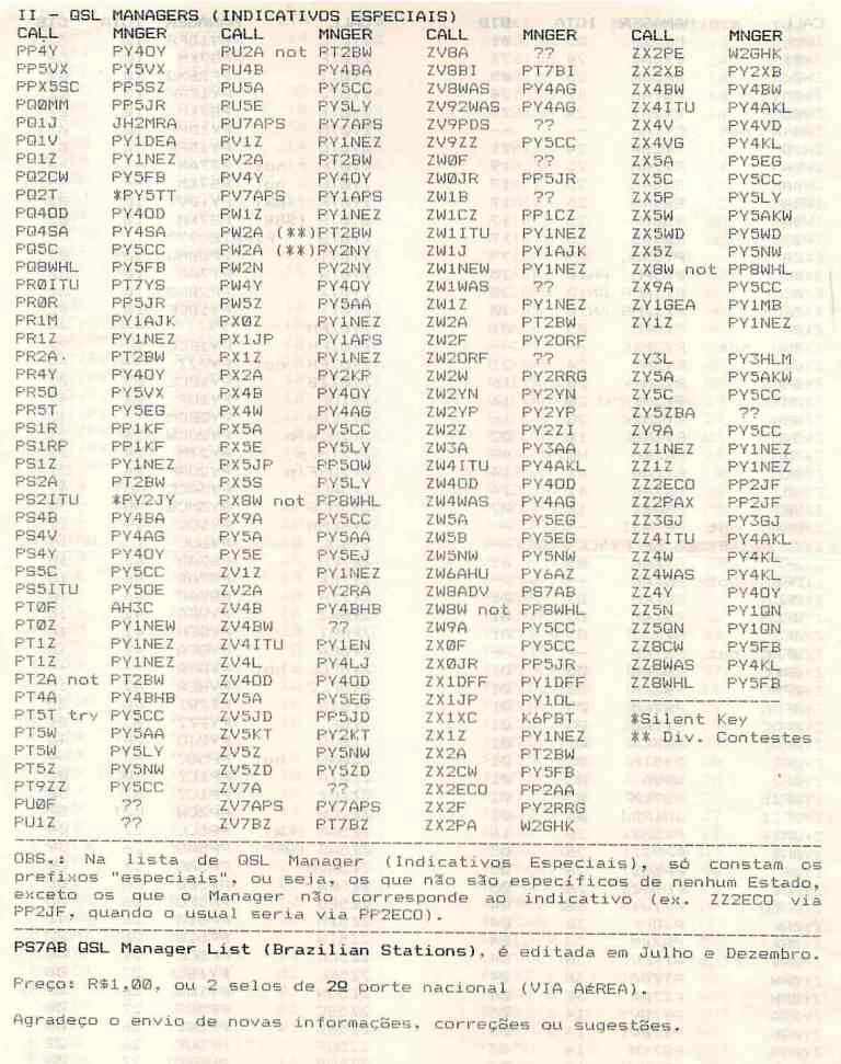PS7AB QSL MANAGER LIST