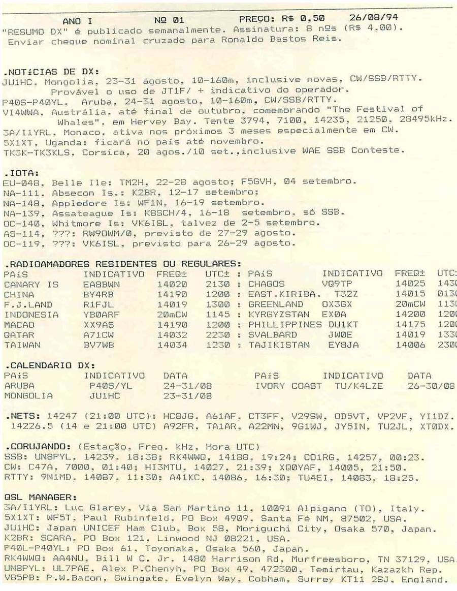 O boletim era publicado semanalmente por PS7AB, Rony, com notícias voltadas especialmente para os apreciadores do DX. .
