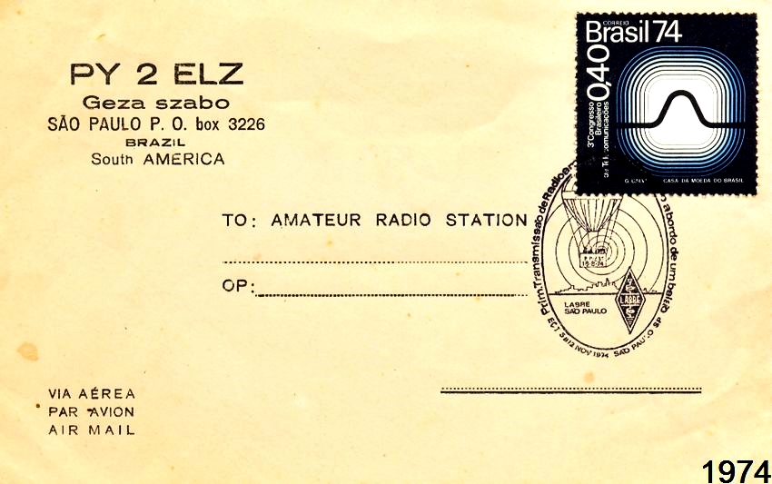 Envelope com Carimbo Comemorativo a 1º transmissão de radioamadores a bordo de um balão efetivada em nov.1974