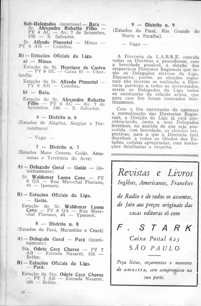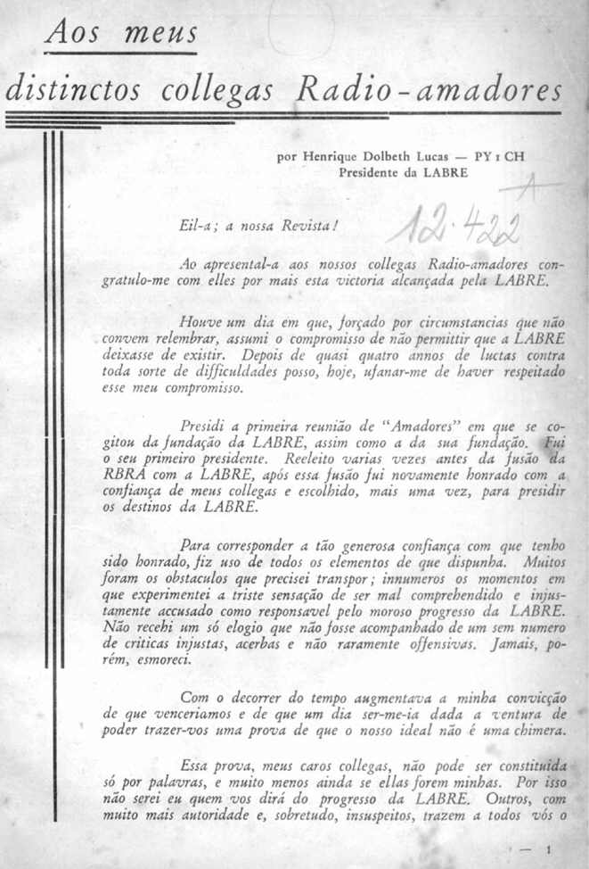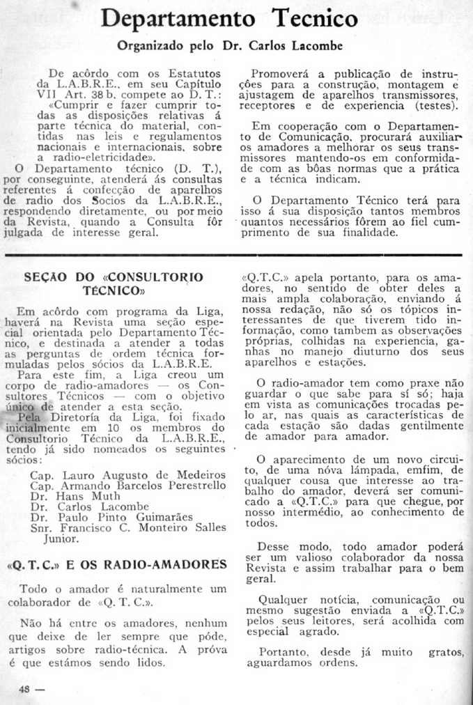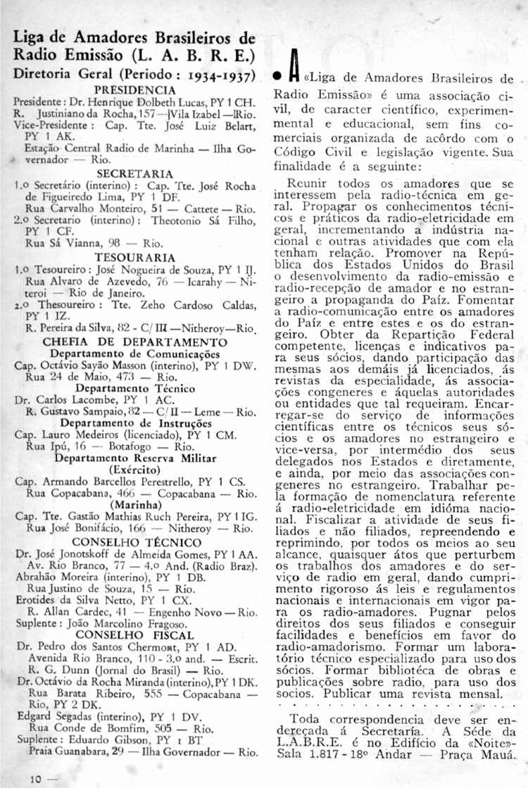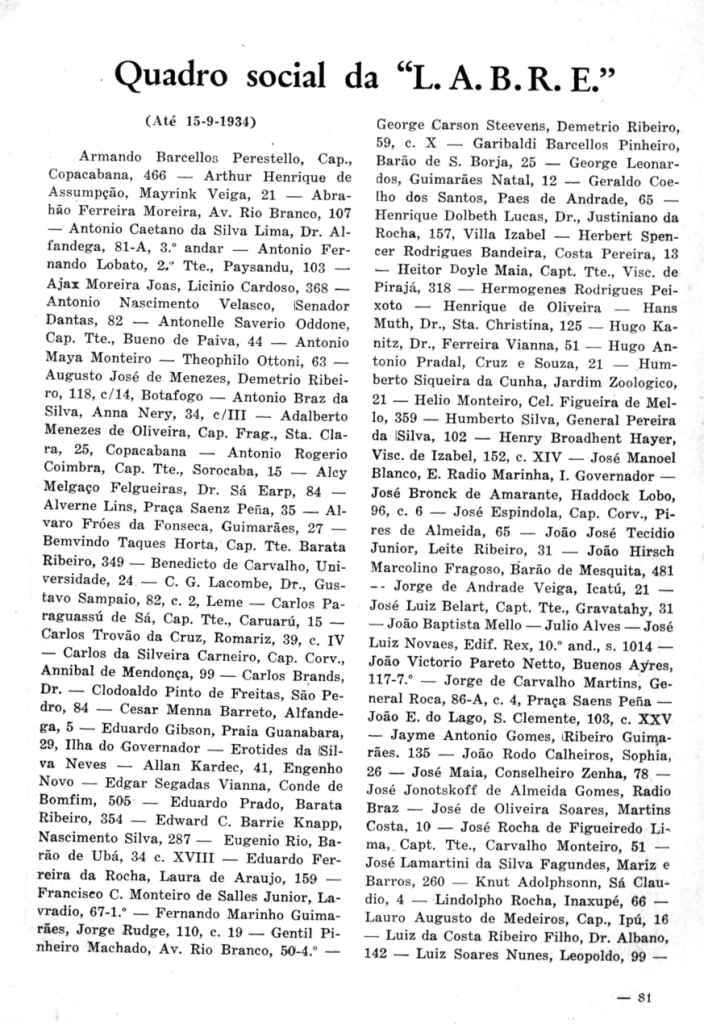 - 1ª Diretoria da LABRE (continuação)