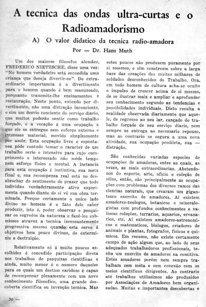 - A Técnica de Ultra Curtas e o Radioamadorismo (continuação)